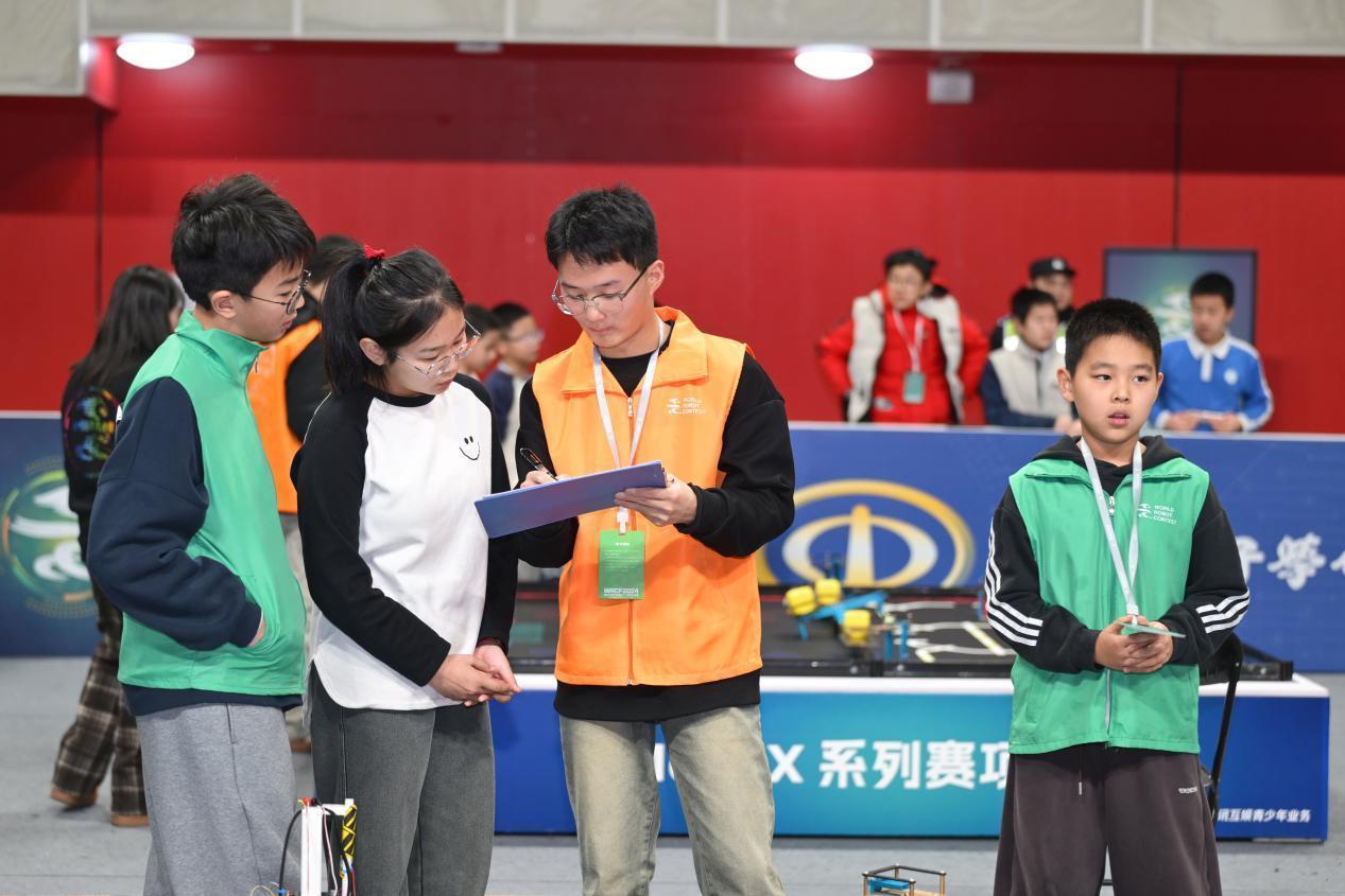 “每天7点半到岗,下午将近6点结束,中午吃饭、休息1小时左右。”现场一位志愿者介绍,所有志愿者均为郑州轻工业大学在校学生,总共100余名,于2024年12月中旬接到报名通知,经过面试、培训等环节后上岗,协助处理选手检录、比赛结果复检等工作。