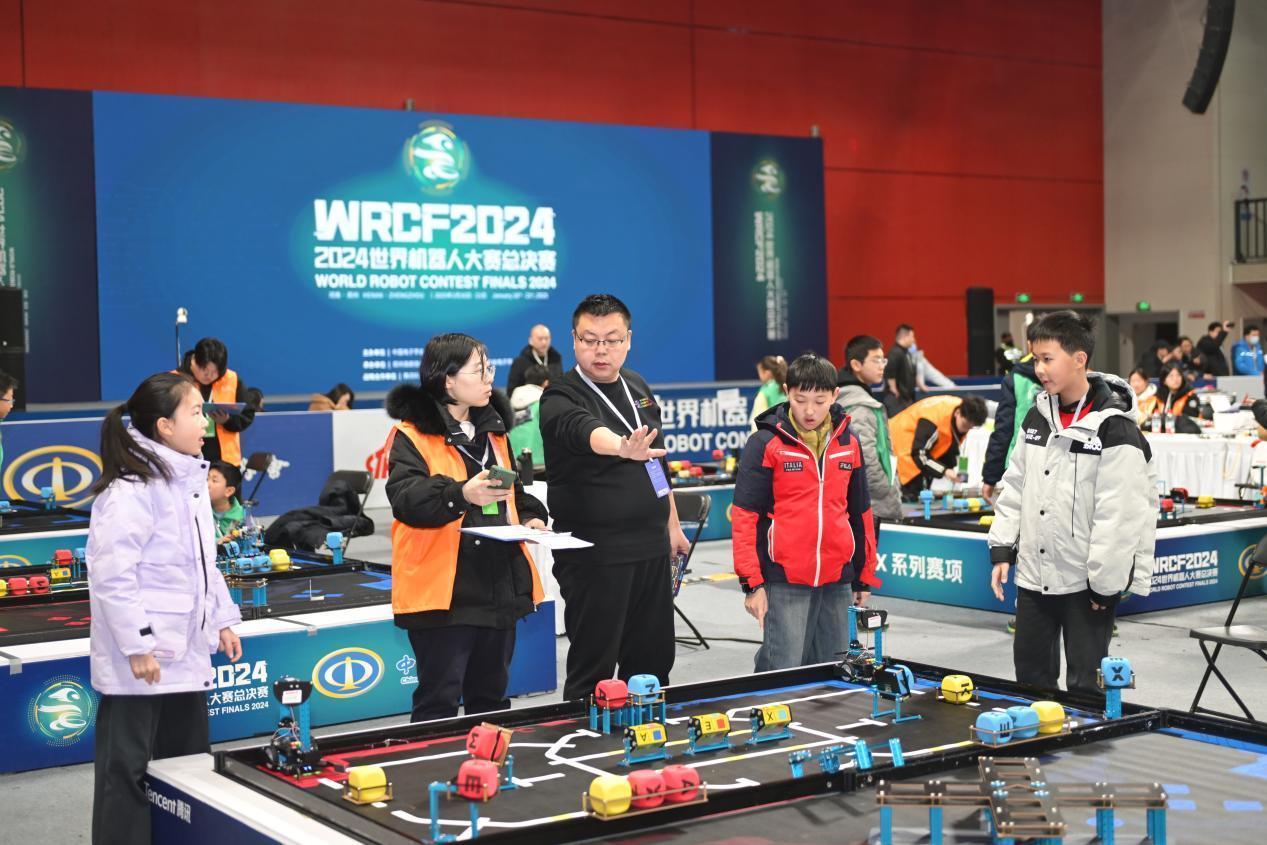 【大河财立方 记者 张克瑶】1月17日,2024世界机器人大赛总决赛进行到第二天。作为本次总决赛的主会场,郑州轻工业大学科学校区赛项最多,裁判、保安等工作人员全力为大赛做好保障,其中穿着橙色马甲的志愿者成为大赛现场的一道“风景线”。
